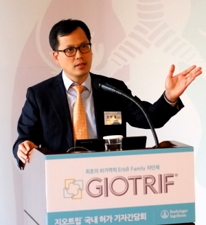 Á¶º´Ã¶ ±³¼ö´Â "Áö¿ÀÆ®¸³Àº À̹ø ¼ÒÄ¡ µ¿°è¿Ã¸²ÇÈ ½ºÇÇµå ½ºÄÉÀÌÆÃ¿¡¼ ±Ý¸Þ´ÞÀ» ȹµæÇÑ ÀÌ»óÈ ¼±¼ö°°Àº Ç¥ÀûÇ×¾ÏÁ¦"¶ó¸ç "ÀÌ·¹»ç, Ÿ¼¼¹Ù µî 1¼¼´ë Ä¡·áÁ¦´Â EGFRÀ» ´Üµ¶À¸·Î ¾ïÁ¦ÇØ Æó¾Ï ¼ºÀå ¹× Å¸ Àå±â ÀüÀÌ, »ýÁ¸·ü µî¿¡ ÇѰ踦 Áö´Ñ °ÍÀÌ »ç½ÇÀÌ´Ù. Áö¿ÀÆ®¸³Àº ³× °¡Áö ErbB º¯À̱ºÀ» ÀüºÎ Â÷´ÜÇÏ´Â °·ÂÇÑ Ç׾ϷÂÀ» Áö³æ´Ù"°í ÇÇ·ÂÇß´Ù.