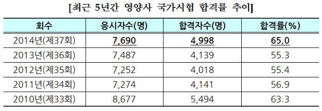 Á¦37ȸ ¿µ¾ç»ç ±¹°¡½ÃÇèÀÇ °æ¿ì Àüü 7690¸íÀÇ ÀÀ½ÃÀÚÁß 4998¸íÀÌ ÇÕ°ÝÇØ 65%ÀÇ ÇÕ°Ý·üÀ» º¸¿´´Ù. Áö³ÇØ 55.3%º¸´Ù Å©°Ô »ó½ÂÇÑ ¼öÄ¡´Ù.