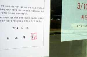 ±èÆ÷½ÃÀÇ °æ¿ì ÈÞÁø¾È³» º®º¸ ¿·¿¡ ¾È³»ÀåÀ» ºÙ¿© ¡°Áý´Ü ÈÞÁø µîÀÇ »çÀ¯·Î Áö¿ªÁֹΠ°Ç°¿¡ Áß´ëÇÑ À§ÇØ ¹ß»ýÀÌ ¿ì·ÁµÈ´Ù¡±¸ç Áï½Ã ȯÀÚÁø·á ¾÷¹«¸¦ °³½ÃÇÒ °ÍÀ» ´çºÎÇß´Ù.