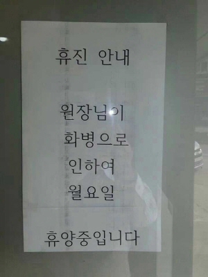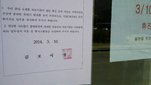 Á¤ºÎ°¡ °°æ´ëÀÀ Àǻ縦 ¹àÈù ¸¸Å ½ÃÀåÀÌ Á÷Á¢ ³ª¼ °æ°í¹®À» ºÙÀÎ »ç·Êµµ Æ÷ÂøµÆ´Ù. ±èÆ÷½Ã¿¡ À§Ä¡ÇÑ ¸ð º´ÀÇ¿ø ÀÔ±¸¿¡´Â ÈÞÁø ¾È³»¹® ¿·¿¡ °æ°í¹®ÀÌ ºÎÂøµÆ´Ù. [»çÁø 2]
