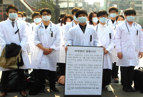 ´ëÇÑÀǰú´ëÇС¤ÀÇÇÐÀü¹®´ëÇпøÇлýÇùȸ(ÀÇ´ëÇù, ȸÀå ÇÔÇö¼®)´Â 16ÀÏ ¿ÀÈÄ ½ÅÃ̰ú ¸íµ¿ ÀÏ´ë¿¡¼ ÀÇÇù°ú Á¤ºÎÀÇ Á¦´ë·Î µÈ Çù»óÀ» Ã˱¸Çϸç ħ¹¬½ÃÀ§¸¦ ¹ú¿´´Ù.[»çÁø] À̳¯ ¸ðÀÎ ÀÇ´ë»ýµéÀº 80~90¸íÀÌ´Ù.