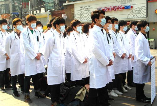 ÁöÇÏö ½ÅÃÌ¿ª¿¡ ¸ðÀÎ 30¿©¸íÀÇ ÀÇ´ë»ýµéÀº ÀÇ»çµéÀÇ »ó¡ÀÎ ÇÏ¾á °¡¿îÀ» ÀÔ°í ûÁø±â¸¦ ¸ñ¿¡ °É¾ú´Ù.