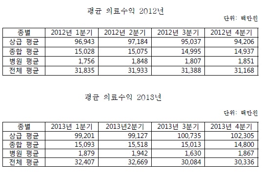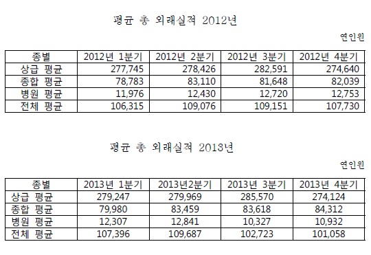 »ó±ÞÁ¾ÇÕº´¿øÀ» Á¦¿ÜÇÑ Á¾ÇÕº´¿ø°ú º´¿øÀº ÀÇ·á¼öÀÍÀÌ °¨¼Ò¼¼ÀÓ¿¡ µû¶ó Àüü Æò±Õ ÀÇ·á¼öÀÍÀÌ 2012³â 1ºÐ±â 318¾ï3500¸¸¿ø¿¡¼ 2013³â 4ºÐ±â 303¾ï3600¸¸¿øÀ¸·Î ¶³¾îÁ³´Ù.