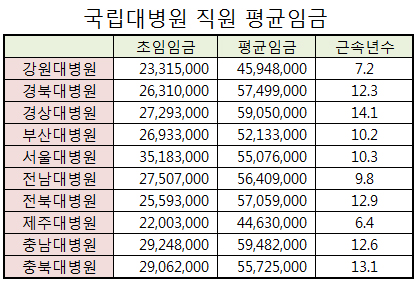 Á÷¿ø Àüü Æò±ÕÀÓ±ÝÀÌ °¡Àå ³ôÀº °÷Àº Ãæ³²´ëº´¿øÀ¸·Î 5900¸¸¿øÀ̾ú°í, °¡Àå ³·Àº ±â°üÀº Á¦Áִ뺴¿øÀ¸·Î 4400¸¸¿øÀÌ´Ù.