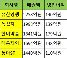 ³ì½ÊÀÚÀÇ µÚ´Â Çѹ̾àǰÀÌ ÂѰí ÀÖ´Ù. Çѹ̴ °°Àº ±â°£ 1841¾ï¿øÀÇ ¸ÅÃâÀ» ¿Ã·È´Ù. ¿µ¾÷ÀÌÀÍÀº 179¾ï¿øÀ¸·Î 5°³ ȸ»ç Áß °¡Àå ³ôÀº ¼öÄ¡´Ù.