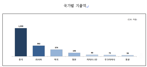 ½ÇÁ¦ ¹®Ã¼ºÎ°¡ 2012³âµµ¿Í 2013³âµµ ¿Ü±¹ÀÎ ½Å¿ëÄ«µå ±¹³»»ç¿ëÀ» ºÐ¼®ÇÑ ÀÚ·á¿¡ µû¸£¸é ·¯½Ã¾ÆÀÇ ÀÇ·áºÎ¹® ÁöÃâ¾×Àº 592¾ï¿øÀ¸·Î ¹Ì±¹(374¾ï¿ø)À» ¾ÕÁú·¶À¸¸ç ÀÌ´Â Àü³â´ëºñ 50%°¡ Áõ°¡ÇÑ ¼öÄ¡·Î ÇâÈÄ ´õ¿í ´Ã¾î³¯ °ÍÀ¸·Î ±â´ëµÇ°í ÀÖ´Ù.[¾Æ·¡ Ç¥]