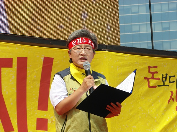 ¼¿ï¿ª¿¡ Áý°áÇÑ Á¶ÇÕ¿øµé ¿ª½Ã ¡°µ·º¸´Ù »ý¸íÀÌ´Ù¡±, ¡°±¹¹Î°Ç° ÁöÄѳ»ÀÚ¡±, ¡°ÁøÁÖÀÇ·á¿ø Àç°³¿øÇÏ¶ó¡± µîÀÇ ±¸È£¸¦ ¿Ã¢ÇÏ¸ç ÆÄ¾÷¿¡ Âü¿©Çß´Ù.