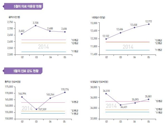 5¿ù Áø·á ÃÑ È¯ÀÚ¼ö´Â Áö³ÇØ 5¿ù ´ëºñ 15¸¸¸í(0.6%) ´Ã¾úÁö¸¸ Áö³´Þ¿¡ ºñÇØ¼´Â ¿ÀÈ÷·Á 5¸¸¸í(0.2%)ÀÌ ÁÙ¾îµç 2684¸¸¸íÀ» ±â·ÏÇß´Ù. ȯÀÚ´Â ÁÙ°í Áø·áºñ´Â Áõ°¡ÇÑ °ÍÀÌ´Ù.