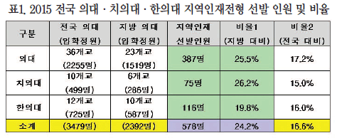 ¿ÃÇØ ÀԽúÎÅÍ ¼öµµ±ÇÀ» Á¦¿ÜÇÑ Áö¿ªÀÇ Àǰú´ëÇп¡¼ Áö¿ª °í±³ Ãâ½ÅÀ» ÀÏÁ¤ ºñÀ² ÀÌ»ó ¼±¹ßÇÒ ¼ö ÀÖ°Ô µÇ¸é¼ ÀԽð谡 µé½âÀ̰í ÀÖ´Ù.