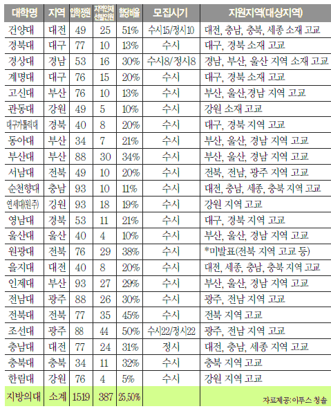 Çкδ Çлý ¸ðÁý ÀüüÀοøÀÇ 30% ÀÌ»óÀ» ÇØ´ç Áö¿ª °íµîÇб³¸¦ Á¹¾÷ÇÑ ÇлýÀ» ¼±¹ßÇϵÇ, ±¸Ã¼ÀûÀÎ ¹æ¹ýÀº Áö¹æ´ëÇÐ ÀåÀÇ ÇÐÄ¢À¸·Î Á¤Çϵµ·Ï ½ÃÇà·ÉÀ» ¸¶·ÃÇß´Ù.