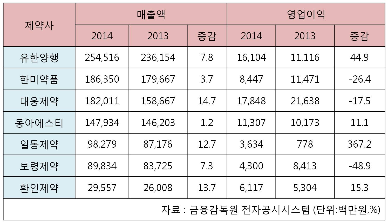±¹³» ÁÖ¿äÁ¦¾à»ç 7°÷ÀÌ 2ºÐ±â ¸ÅÃâ¾×°ú ¿µ¾÷ÀÌÀÍ µî ½ÇÀûÀ» °ø°³Çß´Ù.