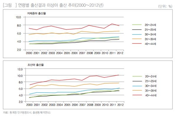 ½ÇÁ¦ ±×°¡ Åë°èû Àα¸µ¿ÇâÀڷḦ Ȱ¿ëÇØ 2000³âºÎÅÍ 2012³â±îÁöÀÇ ¿¬·Éº° Ãâ»ê°á°ú ÃßÀ̸¦ ºÐ¼®ÇÑ °á°ú¸¦ º¸¸é °í·ÉÈ¿Í °ü°è¾øÀÌ Àü ¿¬·É´ë¿¡¼ ÀúüÁß¾Æ ¹× Á¶»ê¾Æ Ãâ»êÀ²ÀÌ Áõ°¡Çϰí ÀÖ´Ù.