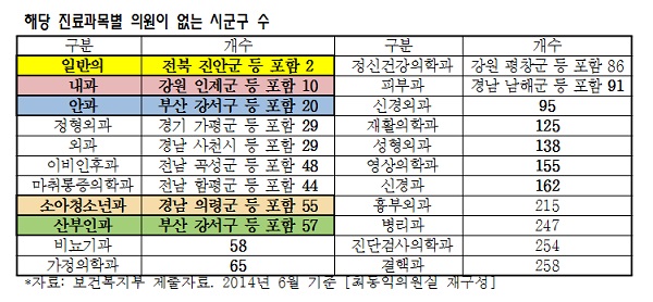 ½Ã±º±¸º°·Î Áø·á °ú¸ñº° ÀÇ¿ø ¼ö¸¦ ºÐ¼®ÇÑ °á°ú, °ú¸ñº°·Î ÀÇ¿øÀÌ ¾ø´Â Áö¿ªµéÀÌ ÀÖ¾ú´Ù.