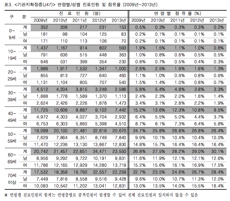´«¿¡ ¶ç´Â °ÍÀº 2009³âºÎÅÍ 2013³â±îÁö 40´ë ÀÌÇÏÀÇ ²ÙÁØÇÑ °¨¼Ò¿¡µµ ºÒ±¸Çϰí 50´ë À̻󿡼´Â ÀÌ ÁúȯÀÌ °è¼ÓÀûÀ¸·Î ´Ã¾î³µ´Ù´Â °ÍÀÌ´Ù.