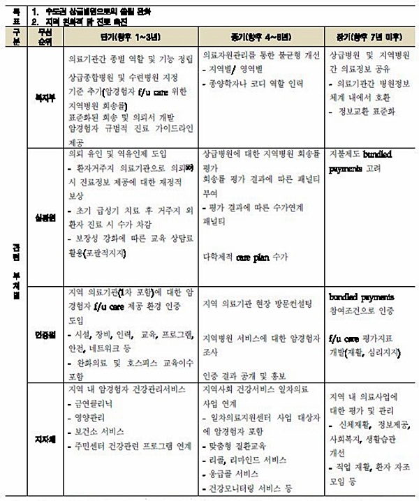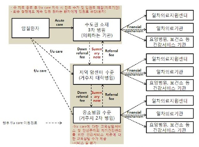 ¹Ý´ë·Î ¼öµµ±Ç »ó±ÞÁ¾º´°ú Áö¿ª ¾Ï¼¾ÅÍ ¹× ´ëÇк´¿øµéÀº Áõ»óÀ» ¹ß°ß, °Ë»ç ¹× ¼ö¼úÀ» ÁøÇàÇϰí, ÇâÈÄ 2³â °£ ¾ÏÀü¹®ÀÇ Áø·á¿Í Ä¡·á¸¦ ÅëÇØ Àç¹ß ¹æÁö¸¦ À§ÇÑ ¼ºñ½º¸¦ Á¦°øÇØ Áö¿ª Áß¼Òº´¿ø µîÀ¸·Î À̼ÛÇÏ´Â ¿ªÇÒÀÌ´Ù.