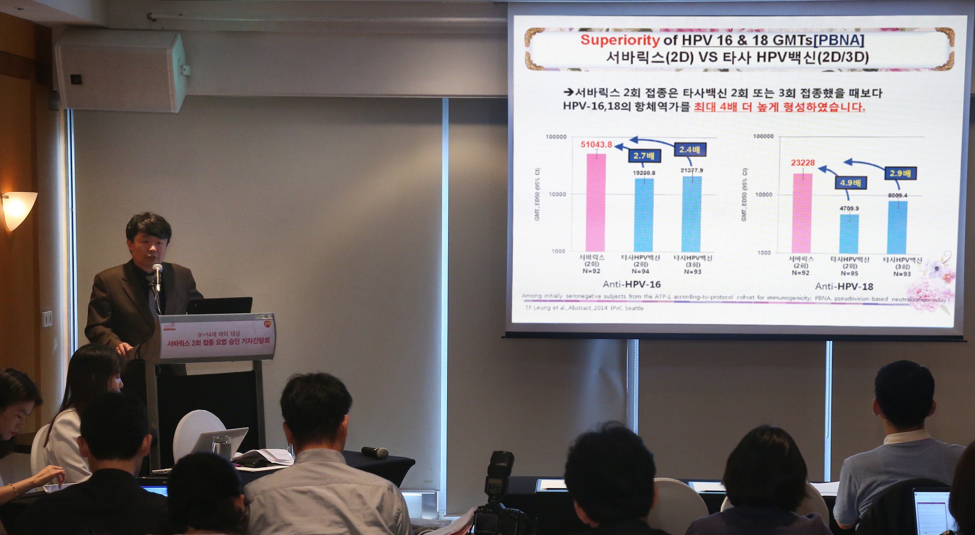 GSK´Â ÃÖ±Ù ÁøÇàÇÑ ¼¹Ù¸¯½º 2ȸ Á¢Á¾ ±âÀÚ°£´ãȸ¸¦ ÅëÇØ ¼¹Ù¸¯½º°¡ °¡´Ù½Ç ´ëºñ HPV À¯¹ß ÀÎÀÚÀÎ 16Çü°ú 18Çü¿¡¼ ÃÖ´ë 4.9¹è ³ôÀº Ç×ü¸¦ Çü¼ºÇÑ´Ù´Â HPV-071 ÀÓ»ó ÀڷḦ °ø°³Çß´Ù.