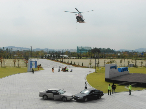 1´Ü°è ÇöÀåÁøÀÔÀ» °ÅÃÄ 2´Ü°è ÀÎ¸í±¸Á¶, 3´Ü°è ȯÀÚÀ̼ÛÀÌ ¼øÂ÷ÀûÀ¸·Î ½Ã¿¬µÆ´Ù. 2´ëÀÇ Çï±â´Â ¼øÈ¯ÀûÀ¸·Î »ó°øÀ» ¸Éµ¹¸ç, ÀÇ·áÁø°ú ±¸Á¶´ë¿øÀÇ ÅõÀÔÀ» µµ¿Ô´Ù.