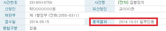 ¼¿ïÇàÁ¤¹ý¿ø Á¦1ºÎ´Â ¼³²ÀÇ´ë°¡ ±³À°ºÎ¸¦ »ó´ë·Î Á¦±âÇÑ ÁýÇàÁ¤Áö ¼Ò¼Û¿¡ ´ëÇØ "2014³â 10¿ù 31ÀϱîÁö È¿·ÂÀ» Á¤ÁöÇÑ´Ù"°í Áö³ 1ÀÏ ÆÇ½ÃÇß´Ù.