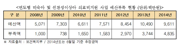 º¸°Çº¹ÁöºÎ·ÎºÎÅÍ Á¦Ãâ¹ÞÀº ÀڷḦ º¸¸é 2008³âºÎÅÍ ÇöÀç±îÁö ¸Å³â ¿¹»êÀÌ ºÎÁ·Çß°í, ¿ÃÇØ ¿¹»êµµ 6¿ù¸» ±âÁØÀ¸·Î 48¾ï Á¤µµ°¡ ºÎÁ·ÇÒ °ÍÀ¸·Î ¿¹»óµÈ´Ù.[Ç¥]