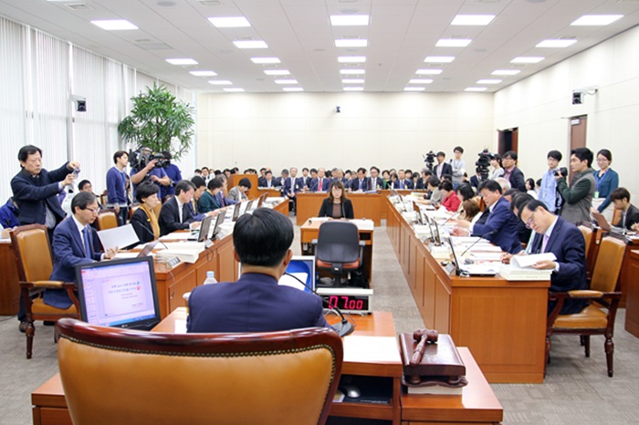 Áö³ 10¿ù 16ÀÏ ±¹È¸ 6Ãþ º¸°Çº¹ÁöÀ§¿øÈ¸Àå¿¡¼´Â 14½Ã°£¿©¿¡ °ÉÄ£ ³¯¼± ¼³ÀüÀÌ ¿À°¬´Ù. ±¹È¸ º¸°Çº¹ÁöÀ§¿øµéÀº ¾î¸£°í ´Þ·¡¸ç ¹Ð´çÀÇ Áø¼ö¸¦ º¸¿´°í, ±â°üÀåµéÀº ÁغñµÈ ´äº¯À» Èû ÀÖ°Ô Àü´ÞÇϸç ÁÂÁßÀ» ¾ÐµµÇß´Ù.