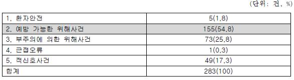 ºÐ¼® °á°ú, ¿¹¹æ °¡´ÉÇÑ À§ÇØ»ç°Ç ºñÁßÀÌ 55.3%·Î °¡Àå ³ô¾ÒÀ¸¸ç ºÒ°¡Ç×·ÂÀ¸·Î ÆÇ´ÜµÈ »ç°ÇÀÌ 32.4%¿´´Ù.[Ç¥]