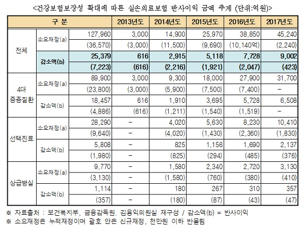±×¿¡ µû¸£¸é 2013³âºÎÅÍ 2017³â±îÁö 5³â °£ °Ç°º¸Çè¿¡ ÅõÀԵǴ 12Á¶7960¾ï¿ø Áß ¹Î°£º¸Çèȸ»ç°¡ ¾ò´Â ¹Ý»çÀÌÀÍÀº ÃÑ 2Á¶5379¾ï¿øÀÎ °ÍÀ¸·Î °è»êµÆ´Ù.[Ç¥]