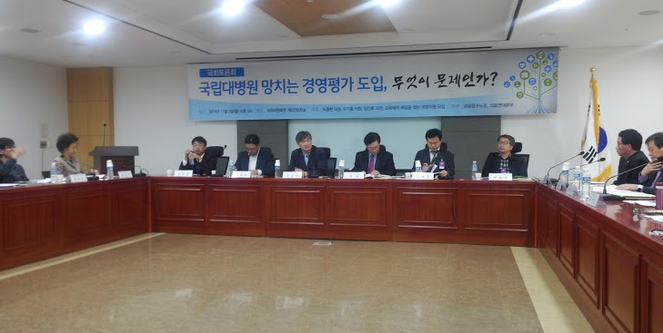 ¡®±¹¸³´ëº´¿ø °æ¿µÆò°¡¡¯ µµÀÔÀ» ¾ÕµÎ°í ±¹È¸¿¡¼ ÀÌ¿¡ °üÇÑ Åä·Ðȸ°¡ ¿·ÈÀ¸³ª, ±íÀº ³íÀÇ´Â ÀÌ·ïÁöÁö ¸øÇÑ Ã¤ ¸¶¹«¸®µÆ´Ù. Åä·Ð Âü¼®ÀÚµéÀº Á¤ºÎºÎó ÀÇ°ß ¼ö·Å ¹æ½Ä¿¡ ´ëÇÑ ¿ì·Á¿Í ¾Æ½¬¿òÀ» Ç¥Çß´Ù.