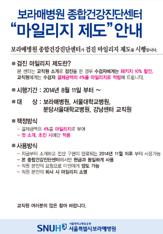 ¼¿ï´ëÇб³º´¿øÀÌ À§Å¹ ¿î¿µÇÏ´Â ½Ã¸³º¸¶ó¸Åº´¿øÀÌ °Ç°°ËÁø ȯÀÚ¸¦ ¼Ò°³ÇÑ Á÷¿ø¿¡°Ô ¸¶Àϸ®Áö¸¦ Àû¸³ÇØÁÖ°í, ȯÀÚ¿¡°Ô´Â °ËÁøºñ¸¦ ÇÒÀÎÇØ ÁÖ´Â Á¦µµ¸¦ ¿î¿ëÇÑ °ÍÀ¸·Î µå·¯³ª ³í¶õÀÌ ¿¹»óµÈ´Ù.