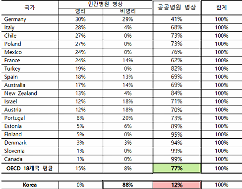 ¹Ý¸é, OECD ȸ¿ø±¹ Áß ¿µ¸®º´¿ø Çã¿ëÇÏ´Â 18°³ ±¹°¡ÀÇ ¡®°ø°øº´¿ø º´»ó º¸À¯À²¡¯Àº Æò±Õ 77%·Î ³ªÅ¸³µ´Ù.