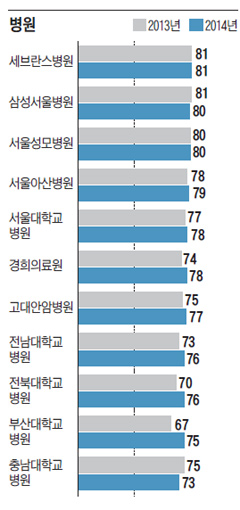 2012³â°ú 2013³â °øµ¿ 1À§¿´´ø ¼¼ºê¶õ½ºº´¿øÀº ¿ÃÇØ 81Á¡À¸·Î ´Üµ¶ 1À§, »ï¼º¼¿ïº´¿ø°ú ¼¿ï¼º¸ðº´¿øÀÌ 80Á¡À¸·Î °øµ¿ 2À§, ¼¿ï¾Æ»êº´¿øÀÌ 79Á¡À¸·Î 4À§¸¦ ±â·ÏÇß´Ù.