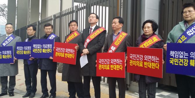 Ãß¹«Áø ȸÀåÀº À̳¯ ±âÀÚµé°ú ¸¸³ª ¡°Á¤ºÎÀÇ ±ÔÁ¦±â¿äƾÀº ±ÔÁ¦¿Ïȶó´Â ¹Ì¸í ÇÏ¿¡ ±¹¹Î°Ç°À» ³»ÆØ°³Ä£ °Í¡±À̶ó¸ç ¡°ÀÇ·áÀÇ Àü¹®¼ºÀ» ¹«½ÃÇÔÀ¸·Î½á ÀÇ·áü°è¸¦ ºØ±«½Ãų °Í¡±À̶ó°í ¸ñ¼Ò¸®¸¦ ³ô¿´´Ù.