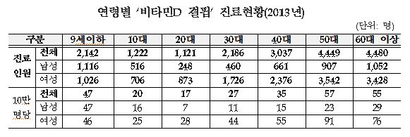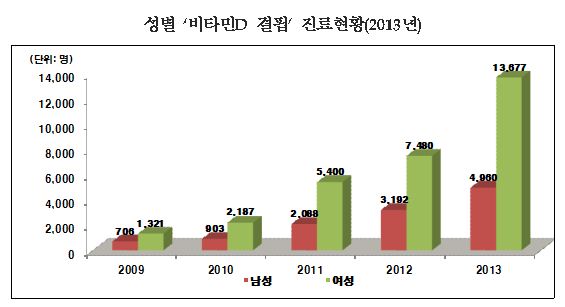 ºñŸ¹ÎD °áÇÌÀº ³²¼º¿¡ ºñÇØ ¿©¼º¿¡°Ô¼ ¸¹ÀÌ ³ªÅ¸³µ´Ù. 2013³â ºñŸ¹ÎD °áÇÌÁõ Áø·áÀÚ Áß ¿©¼ºÀº 82.8%·Î, ³²¼º¿¡ ºñÇØ 2.8¹è³ª ¸¹¾Ò´Ù.