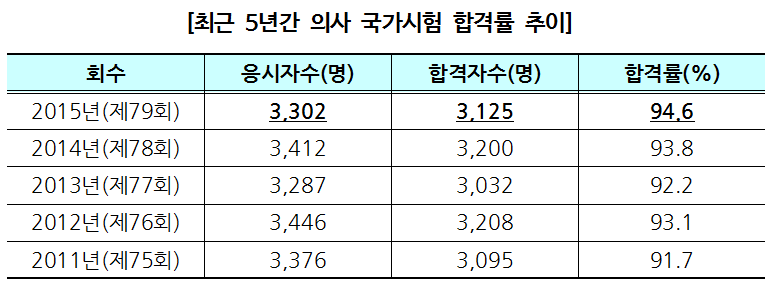 À̹ø ÀÇ»ç ±¹°¡½ÃÇèÀº Àüü ÀÀ½ÃÀÚ 3302¸í °¡¿îµ¥ 3125¸íÀÌ ÇÕ°ÝÇØ 94.6%ÀÇ ÇÕ°Ý·üÀ» ±â·ÏÇß´Ù. ¼ö¼®ÇÕ°ÝÀº 400Á¡ ¸¸Á¡¿¡ 376Á¡(94Á¡/100Á¡ ȯ»ê ±âÁØ)À» ÃëµæÇÑ Àü³²´ëÇб³ ¾È¿¬¼ö¾¾°¡ Â÷ÁöÇß´Ù.