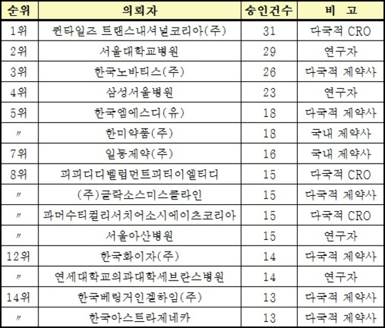 ½Å¾à °³¹ßÀ» À§ÇØ °¡Àå ¸¹Àº ÀÓ»óÀ» ½ÅûÇÑ ±¹³» Á¦¾à»ç´Â Çѹ̾àǰ, ´Ù±¹Àû»ç´Â Çѱ¹³ë¹ÙƼ½º¿´´Ù.[Ç¥]