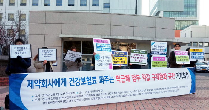 ¼³¸íȸ¿¡ ¾Õ¼ °Ç°±Ç ½ÇÇöÀ» À§ÇÑ º¸°ÇÀÇ·á´Üü¿¬ÇÕÀ» ºñ·ÔÇØ º¸°ÇÀÇ·á°è ½Ã¹Î´ÜüµéÀº ±Ý¹ø º¹ÁöºÎ °³Á¤¾ÈÀ» µÎ°í "Á¦¾àȸ»ç¿¡ °Ç°º¸Çè·á ÆÛÁÖ±â½Ä ¾à°ª ÀÎ»ó Æ¯Çý Á¤Ã¥"À̶ó°í ºñ³Çß´Ù.[»çÁø]