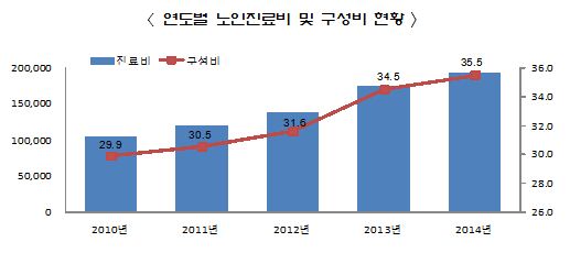 À̸¦ µÎ°í ½ÉÆò¿øÀº ³ëÀÎÁø·áºñ Áõ°¡¸¦ ¿øÀÎÀ¸·Î ²Å¾Ò´Ù. ½ÉÆò¿ø¿¡ µû¸£¸é 2014³âµµ 65¼¼ ÀÌ»ó ³ëÀÎÀα¸ 601¸¸¸íÀÌ ÇÑÇØµ¿¾È 19Á¶355¾ï¿øÀÇ Áø·áºñ¸¦ »ç¿ëÇß´Ù. ÀÌ´Â Àü³â´ëºñ 10.4%Áõ°¡ÇÑ ¼öÄ¡·Î, ÃÑ Áø·áºñÀÇ 35.5%¸¦ Â÷ÁöÇß´Ù.