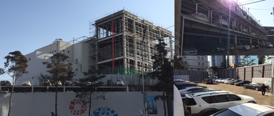 ¡ã °ø»ç ¸¶¹«¸® ´Ü°è¿¡ µ¹ÀÔÇÑ ½Å°üµ¿ ÁÖÂ÷Àå(¿ÞÂÊ)°ú ½Å°üÀÌ µé¾î¼³ ±âÁ¸ ¹× Àӽà ÁÖÂ÷ °ø°£(¿À¸¥ÂÊ) |