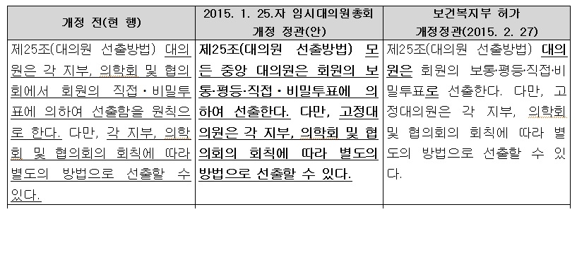 ÀÌÈÄ º¹ÁöºÎ´Â ÀÇÇùÀÌ ¿Ã¸° Á¤°ü °³Á¤¾È Áß Á¦25Á¶(´ëÀÇ¿ø ¼±Ãâ¹æ¹ý) '¸ðµç Áß¾Ó ´ëÀÇ¿øÀº ȸ¿øÀÇ º¸Å롤Æòµî¡¤Á÷Á¢¡¤ºñ¹Ð ÅõÇ¥¿¡ ÀÇÇÏ¿©'¸¦ '´ëÀÇ¿øÀº ȸ¿øÀÇ º¸Å롤Æòµî¡¤Á÷Á¢¡¤ºñ¹Ð ÅõÇ¥·Î ¼±ÃâÇÑ´Ù'´Â µîÀ» ºñ·ÔÇØ ÀϺΠÀÚ±¸¸¦ ¼öÁ¤Çß´Ù.