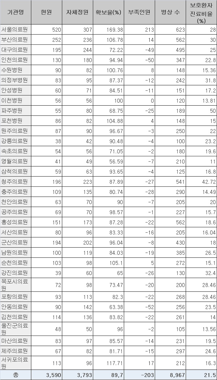 ´ëÇѰ£È£Çùȸ(ÀÌÇÏ °£Çù)¿¡ µû¸£¸é Áö³ÇØ 11¿ù ±âÁØ Áö¹æÀÇ·á¿ø 33°÷ Áß 26°÷ÀÌ °£È£»ç Á¤¿øÀ» ä¿ìÁö ¸øÇϰí ÀÖ´Â °ÍÀ¸·Î ³ªÅ¸³µ´Ù.[¾Æ·¡ Ç¥]