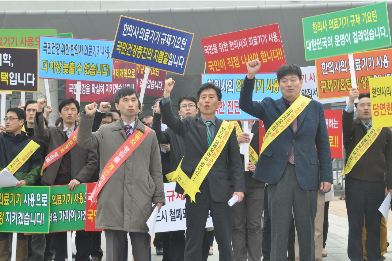 Çö´ë ÀÇ·á±â±â»ç¿ëÀ» Ã˱¸Çϱâ À§ÇØ Áö¿ª±Ç ÇÑÀÇ»çµéÀÌ ÀÕµû¶ó °Å¸® ÅõÀï¿¡ ³ª¼°í ÀÖ´Ù.