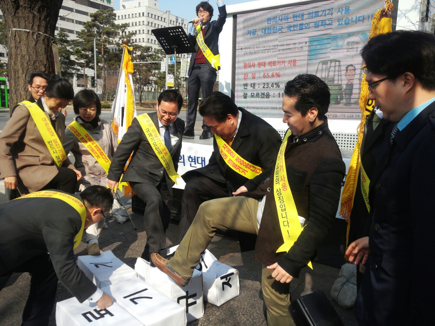 ÇÑÀÇ»ç ÀÇ·á±â±â »ç¿ë °ü·Ã ±¹È¸ °øÃ»È¸¸¦ ¾ÕµÎ°í, ÇÑÀÇ»çµéÀÌ Áý´ÜÇൿÀ» ¹úÀÌ¸ç ±¹È¸¿Í Á¤ºÎ¿¡ ´ëÇÑ ¾Ð¹Ú ¼öÀ§¸¦ ³ôÀ̰í ÀÖ´Â ¸ð½ÀÀÌ´Ù.