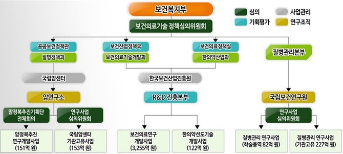 ±× µ¿¾È º¸°ÇÀÇ·á R&D »ç¾÷Àº Çѱ¹º¸°Ç»ê¾÷ÁøÈï¿ø, ±¹¸³º¸°Ç¿¬±¸¿ø, ±¹¸³¾Ï¼¾ÅÍ µî 3°³ ±â°ü¿¡¼ °³º°ÀûÀ¸·Î ¿î¿µµÅ ¿Ô´Ù. ¶§¹®¿¡ ±â°ü¸¶´Ù °¢±â ´Ù¸¥ ±âÁذú °ü¸®¹æ½Ä Â÷À̸¦ º¸¿´´Ù.