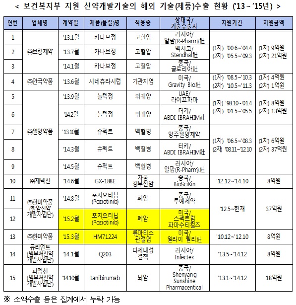 º¸°Çº¹ÁöºÎÀÇ º¸°ÇÀÇ·á ¿¬±¸°³¹ß»ç¾÷(R&D) Áö¿øÀ¸·Î ź»ýÇÑ ±¹³» ½Å¾àÀÌ ¾à 1Á¶2000¾ï¿ø ±Ô¸ð ÇØ¿Ü ±â¼ú ¼öÃâ ½ÇÀûÀ» ³½ °ÍÀ¸·Î ³ªÅ¸³µ´Ù.