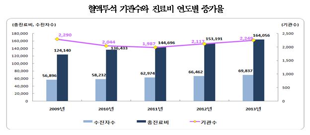 °Ç°º¸Çè½É»çÆò°¡¿ø(¿øÀå ¼Õ¸í¼¼)ÀÌ 8ÀÏ °ø°³ÇÑ Ç÷¾×Åõ¼® ÇöȲÀ» »ìÆìº¸¸é ³ëÀÎÀα¸ Áõ°¡¿Í ¸»±â½ÅÀåÁúȯÀÇ ÁÖ¿ä ¿øÀÎÀÎ ´ç´¢º´ ¹× °íÇ÷¾Ð ȯÀÚ°¡ ´Ã¸é¼ 2009³â 5¸¸6896¸íÀÌ´ø Åõ¼®È¯ÀÚ°¡ 2013³â 6¸¸9837¸íÀ¸·Î 1¸¸2941¸í ¾à 22.7% Áõ°¡Çß´Ù.