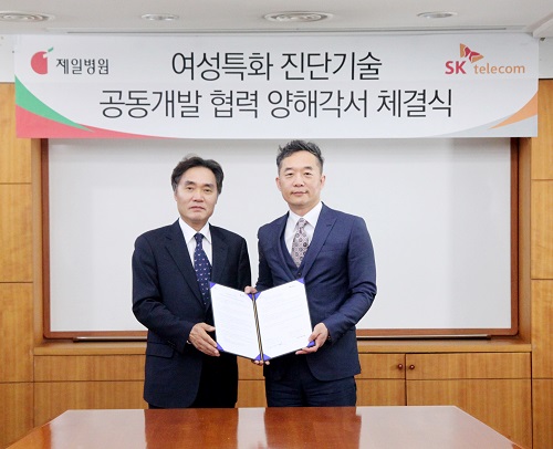 Á¦ÀÏÀÇ·áÀç´Ü Á¦ÀϺ´¿ø(º´¿øÀå ¹ÎÀÀ±â)°ú SK ÅÚ·¹ÄÞ(´ëÇ¥ÀÌ»ç À嵿Çö)ÀÌ Â÷¼¼´ë ±â¼ú ±â¹Ý ¿©¼ºÆ¯È Áø´Ü±â¼ú °³¹ßÀ» À§ÇØ ¼ÕÀ» Àâ¾Ò´Ù.