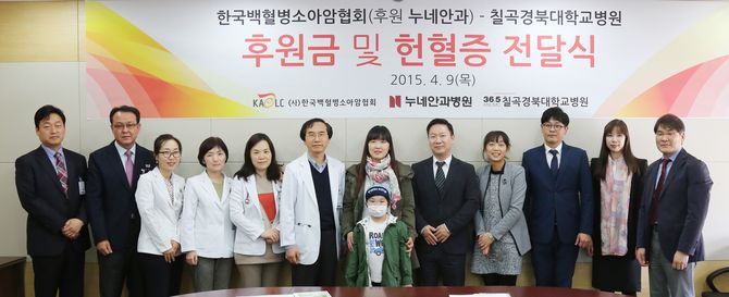 °æºÏ´ëÇб³º´¿ø¿¡¼ Çѱ¹¹éÇ÷º´¼Ò¾Æ¾ÏÇùȸ¿Í ÇÔ²² Áö³ 4¿ù 9ÀÏ(¸ñ) ¿ÀÈÄ 1½Ã ¹éÇ÷º´¼Ò¾Æ¾Ï ȯ¾ÆµéÀ» À§ÇÑ ÈÄ¿ø±Ý ¹× ÇåÇ÷Áõ Àü´Þ½ÄÀ» ÁøÇàÇß´Ù.
