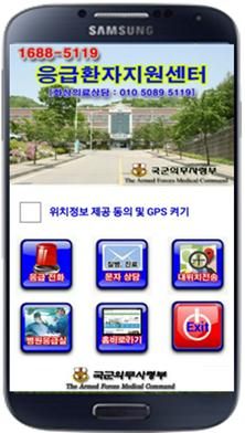 ±º ÀÀ±ÞȯÀÚ ½Å°í ¾ÖÇø®ÄÉÀ̼ÇÀº Ŭ¸¯ ½Ã ¡ãÀÀ±ÞÀüÈ, ÀüÈ¿¬°á Á¦ÇÑ ½Ã ¹®ÀÚ ½Å°í ±â´É ¡ã¹®ÀÚ»ó´ã, Á¤È®ÇÑ À§Ä¡, ÁÖ¼Ò È®ÀÎ Á¦ÇÑ ½Ã GPS ¿¬°á(µ¿ÀÇÇÊ¿ä) ¡ã³» À§Ä¡ Àü¼Û ¹× Àü±¹ ±ºº´¿ø ÀÀ±Þ½Ç Á÷Á¢ ¿¬°á ¡ã±ºº´¿ø ÀÀ±Þ½Ç, °¢Á¾ Àǹ«Á¤º¸ È®ÀÎ µî ÃÑ 5°³ ±â´ÉÀÌ ±¸ºñµÆ´Ù.