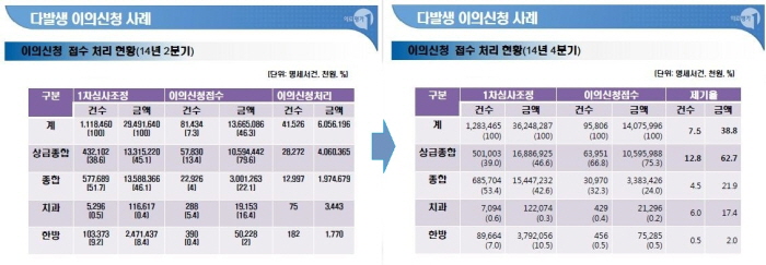 °Ç°º¸Çè½É»çÆò°¡¿ø(¿øÀå ¼Õ¸í¼¼)ÀÌ ÃÖ±Ù °ø°³ÇÑ 'ÀÌÀǽÅû ¹× ´Ùºóµµ »ç·Ê'¸¦ »ìÆìº¸¸é 2014³â 4ºÐ±â¿¡¸¸ 1Â÷ ½É»çÁ¶Á¤µÈ °Ç¼ö°¡ 128¸¸3465°Ç¿¡ ´ÞÇß´Ù. 2ºÐ±â 111¸¸8460°Ç¿¡ ºñÇϸé 16¸¸5005°Ç ´Ã¾ú´Ù.