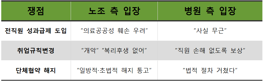 ÀÌ¿¡ µû¶ó ³ëÁ¶¿Í º´¿ø °£ ÀïÁ¡ÀÌ µÇ°í ÀÖ´Â Çö¾ÈÀ» Á¤¸®Çß´Ù.