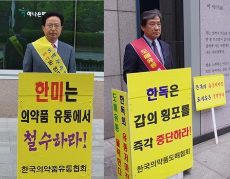 ´ç½Ã¿¡µµ Ȳġ¿± ÀǾàǰµµ¸ÅÇùȸÀåÀº ¿ª»ïµ¿ Çѵ¶ º»»ç ¾Õ¿¡¼ 1ÀÎ ½ÃÀ§¸¦ ¹úÀ̸ç "Çѵ¶Àº °©ÀÇ È¾Æ÷¸¦ Áï°¢ Áß´ÜÇϰí À¯Å븶ÁøÀ» »óÇâ Á¶Á¤Ç϶ó"°í °·ÂÈ÷ ÁÖÀåÇß´Ù.